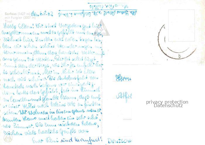 74040414 alte Postkarte Serfaus Tirol Panorama Blick gegen Furgler Samnaungruppe postalisch gelaufen Fliegeraufnahme Erhaltung siehe scans [FriedD77] KatCode: 11390334070624