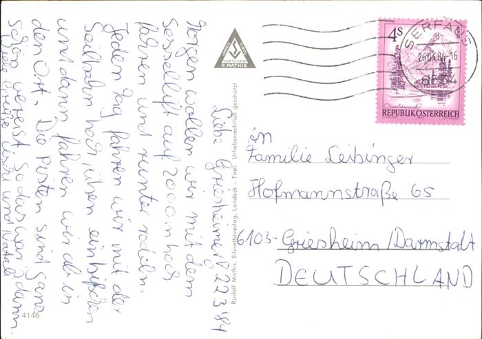 71432898 alte Postkarte Serfaus Tirol Schwebebahn Skigebiet postalisch gelaufen Erhaltung siehe scans KatCode: 11390334070624