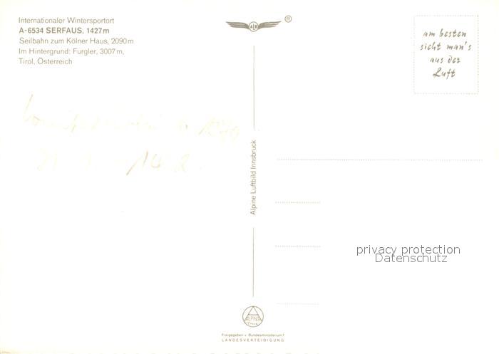 73062463 Serfaus Tirol Seilbahn Koelner Haus Winter postalisch nicht gelaufen Erhaltung siehe scans [KathaD81] KatCode: 11390334070624