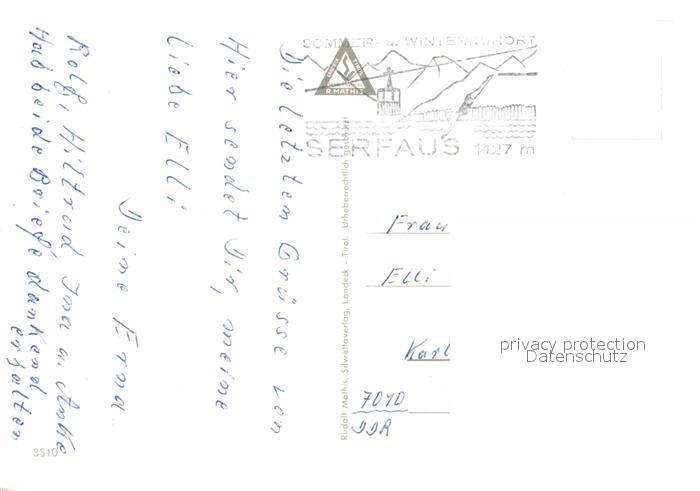 72615467 Serfaus Tirol Teilansicht Panorama Glockenturm Reiterhof Schwimmbad postalisch nicht gelaufen Erhaltung siehe scans [WerneD78] KatCode: 11390334070624