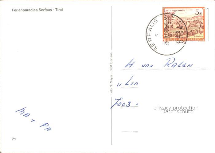 72097500 alte Postkarte Serfaus Tirol Total Kirche Hotel Schwimmbad Trachten postalisch gelaufen Erhaltung siehe scans KatCode: 11390334070624