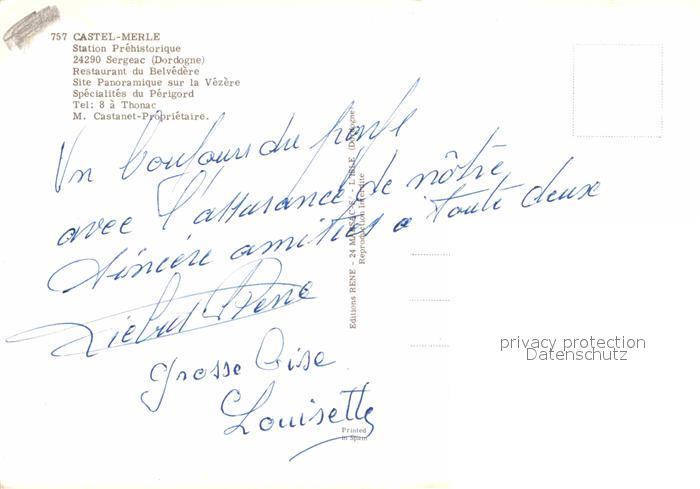 12872655 Sergeac Castel Merle Restaurant postalisch nicht gelaufen Erhaltung siehe scans [LiesaD40] KatCode: 11170024424531