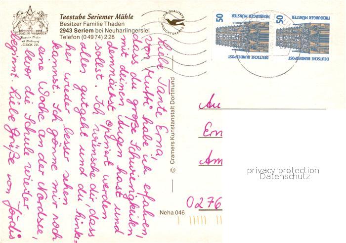 73661025 alte Postkarte Seriem Teestube Seriemer Muehle Ostfriesische Teestube postalisch gelaufen Erhaltung siehe scans [FriedD77] KatCode: 11110003462010