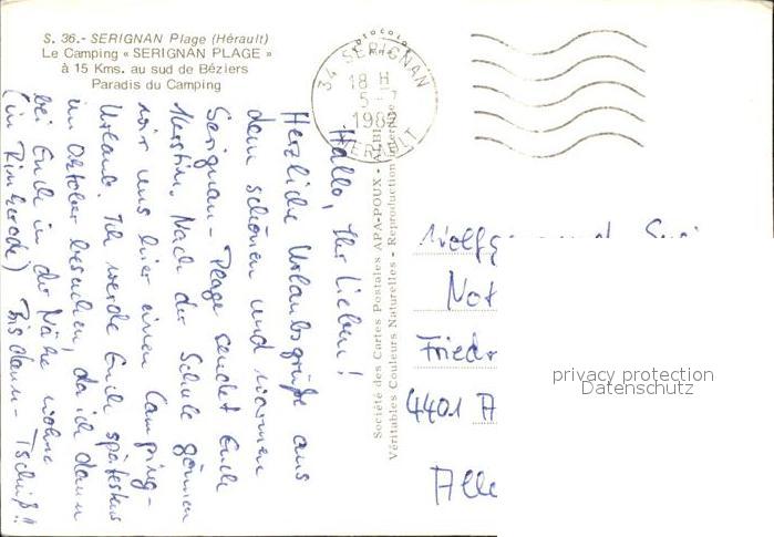 12305009 carte postale Serignan Camping Serignan Plage postalisch gelaufen Erhaltung siehe scans KatCode: 11170034134299