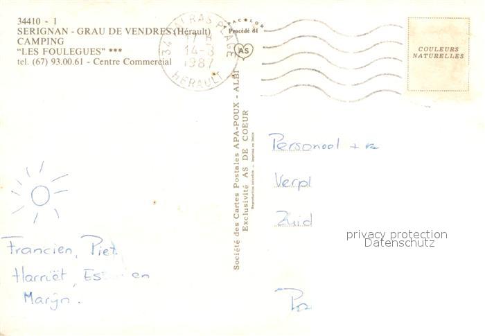 12949488 Serignan Grau de Vendres Camping Les Foulegues KatCode 11170034134299