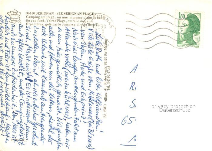 13718098 Serignan Plage Camping ombrage Vue aerienne postalisch gelaufen Erhaltung siehe scans [WerneD78] carte postale Wern Katcode 11170034134299
