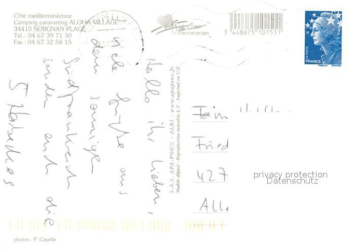 13222115 carte postale Serignan Plage Campingplatz Aloha Village postalisch gelaufen Erhaltung siehe scans [KathaD81] KatCode: 11170034134299