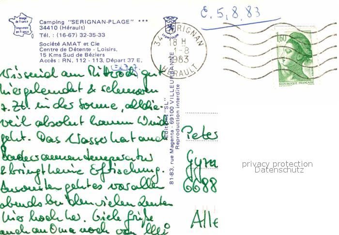 12659949 Serignan Plage Fliegeraufnahme Camping KatCode 11170034134299