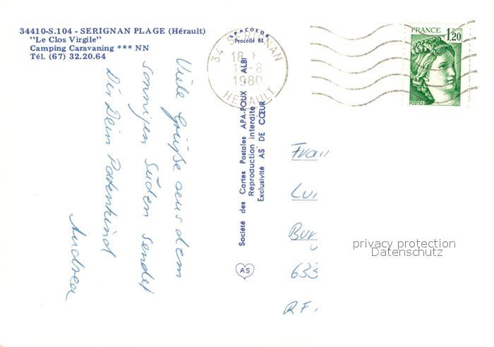 13246818 Serignan Plage Le Clos Virgile Camping Caravaning Plage KatCode 11170034134299