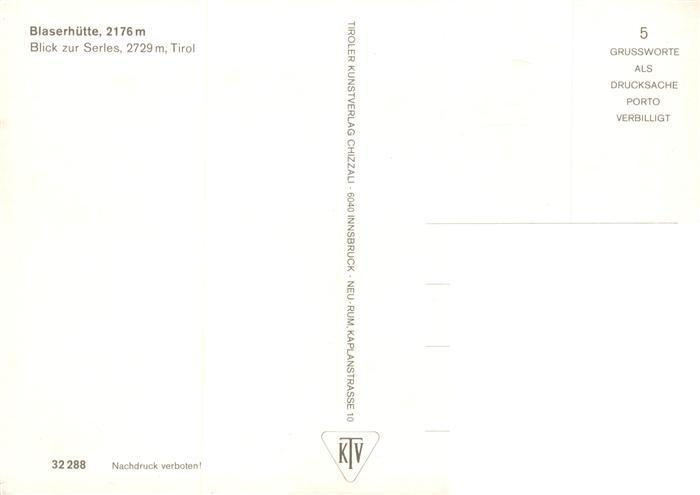 73907468 Serles Blaserhuette postalisch nicht gelaufen Erhaltung siehe scans [WerneD78] KatCode: 11390332070334