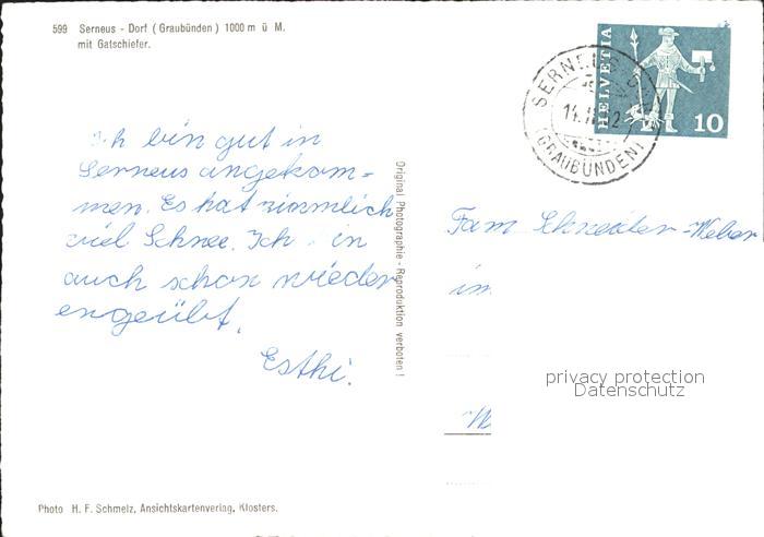 11658957 alte Postkarte Serneus Dorf mit Gatschiefer postalisch gelaufen Erhaltung siehe scans KatCode: 11470100350370