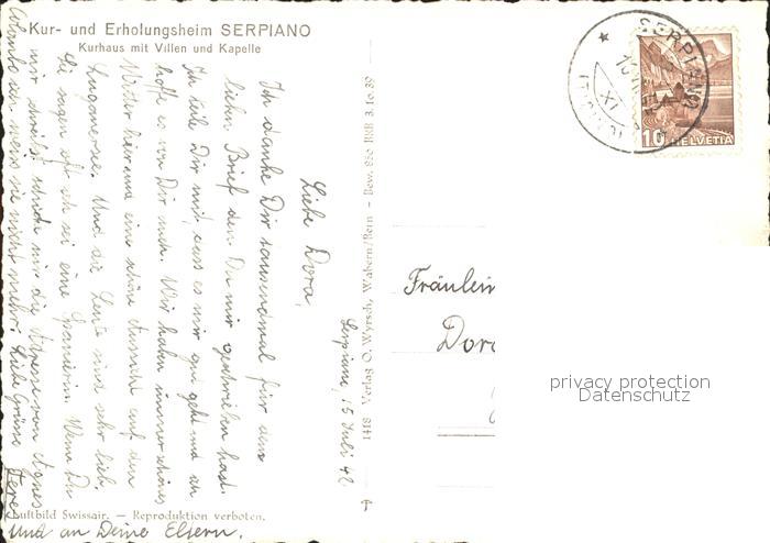 11656382 alte Postkarte Serpiano TI Fliegeraufnahme Kurhaus mit Villen und Kapelle postalisch gelaufen Erhaltung siehe scans KatCode: 11470210665262