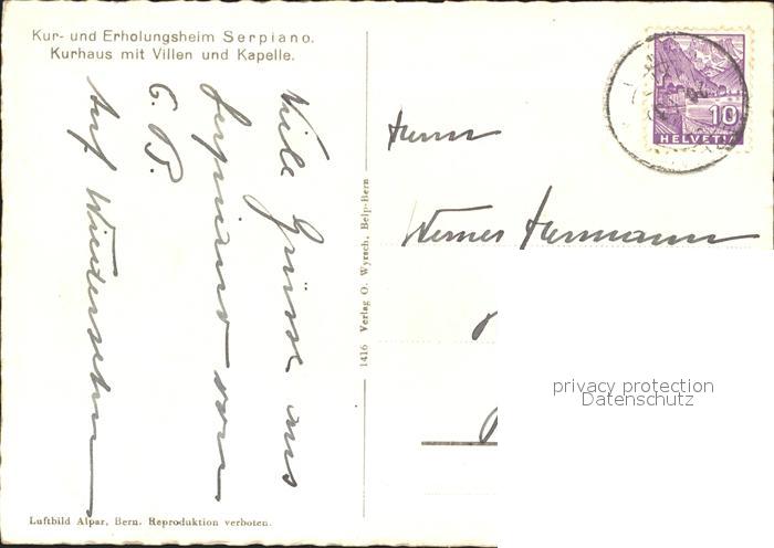 11656384 alte Postkarte Serpiano TI Fliegeraufnahme Kurhaus mit Villen und Kapelle postalisch gelaufen Erhaltung siehe scans KatCode: 11470210665262