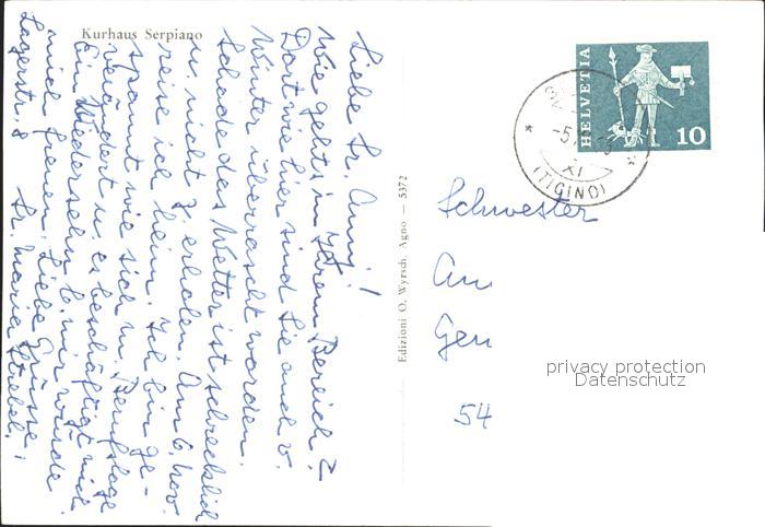 11644031 alte Postkarte Serpiano TI Kurhaus postalisch gelaufen Erhaltung siehe scans KatCode: 11470210665262