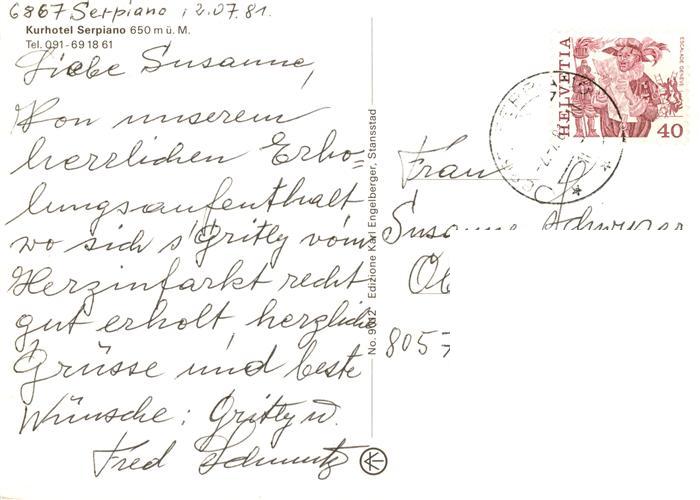 13883479 alte Postkarte Serpiano TI Kurhotel Serpiano Panorama postalisch gelaufen Erhaltung siehe scans [FriedD77] KatCode: 11470210665262