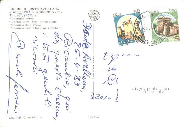 old postcard Serra Sant Abbondio Eremo di Fonte Avellana Kloster Fliegeraufnahme postalisch gelaufen Erhaltung siehe scans