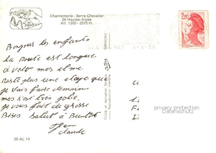 13743271 Serre Chevalier Chantemerie Vue aerienne Panorama postalisch gelaufen Erhaltung siehe scans [FriedD77] carte postale Frie Katcode 11170005105079