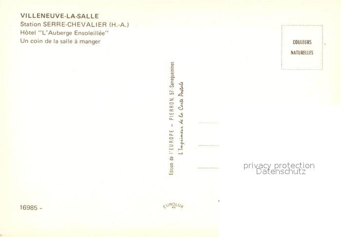 13522622 Serre Chevalier Villeneuve la Salle Hotel Auberge Ensaleillee postalisch nicht gelaufen Erhaltung siehe scans [KathaD81] KatCode: 11170005105079