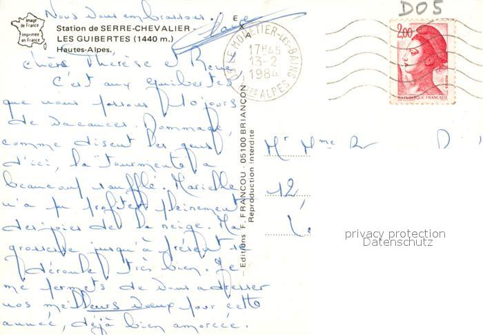 carte postale Serre Chevalier Vue d ensemble Eglise en hiver Les Guibertes Alpes francaises postalisch gelaufen Erhaltung siehe scans [FriedD77]