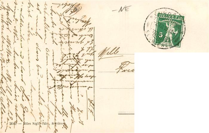 13934413 alte Postkarte Serrieres Neuchatel NE Vue générale Suchard Alpes postalisch gelaufen Erhaltung siehe scans [FriedD77] KatCode: 11470130420154