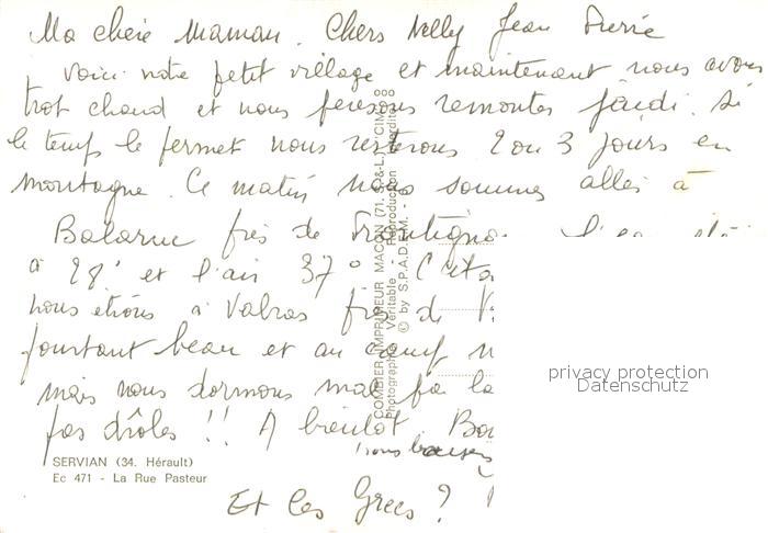 13638072 Servian La Rue Pasteur postalisch nicht gelaufen Erhaltung siehe scans [WerneD78] Wern Katcode 11170034134300