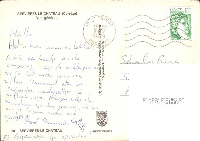 12574435 carte postale Servieres-le-Chateau Luftaufnahme postalisch gelaufen Erhaltung siehe scans [KathaD79] KatCode: 11170019219258