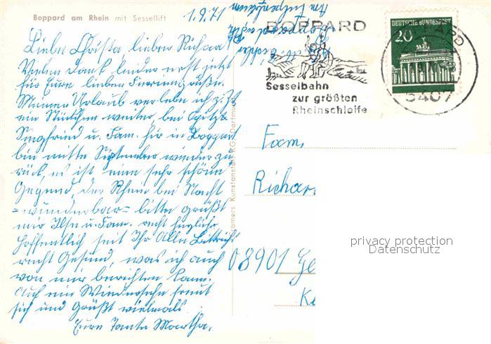 alte Postkarte Sessellift Boppard am Rhein postalisch gelaufen Erhaltung siehe scans [PaolaD17]