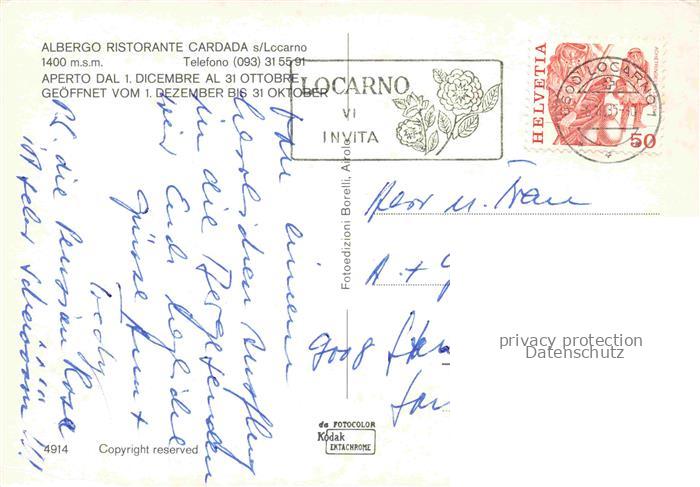 74050663 Sessellift Chairlift Telesiege Alberto Cardada Locarno Schweiz postalisch nicht gelaufen Erhaltung siehe scans [SanaeD93] KatCode: 22040000000400