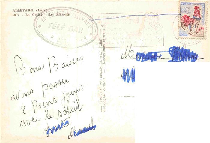 74013576 alte Postkarte Sessellift Chairlift Telesiege Allevard le Collet postalisch gelaufen Erhaltung siehe scans [SanaeD93] KatCode: 22040000000400