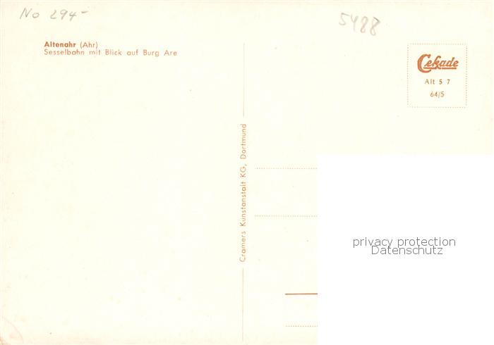 73899101 Sessellift Chairlift Telesiege Altenahr Burg Are postalisch nicht gelaufen Erhaltung siehe scans [IrynaD87] KatCode: 22040000000400
