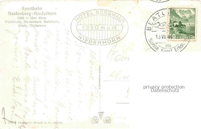 74030130 alte Postkarte Sessellift Chairlift Telesiege Beatenberg Niederhorn postalisch gelaufen Erhaltung siehe scans [IrynaD87] KatCode: 22040000000400