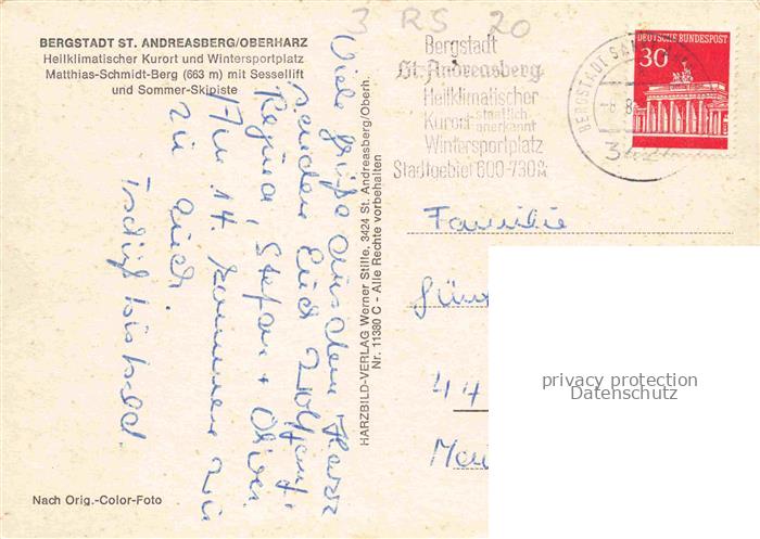 74150598 alte Postkarte Sessellift Chairlift Telesiege Bergstadt St. Andreasberg Oberharz postalisch gelaufen Erhaltung siehe scans [IrynaD87] KatCode: 22040000000400