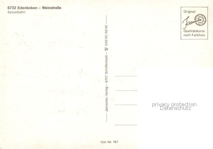 73899103 Sessellift Chairlift Telesiege Edenkoben Weinstrasse postalisch nicht gelaufen Erhaltung siehe scans [IrynaD87] KatCode: 22040000000400
