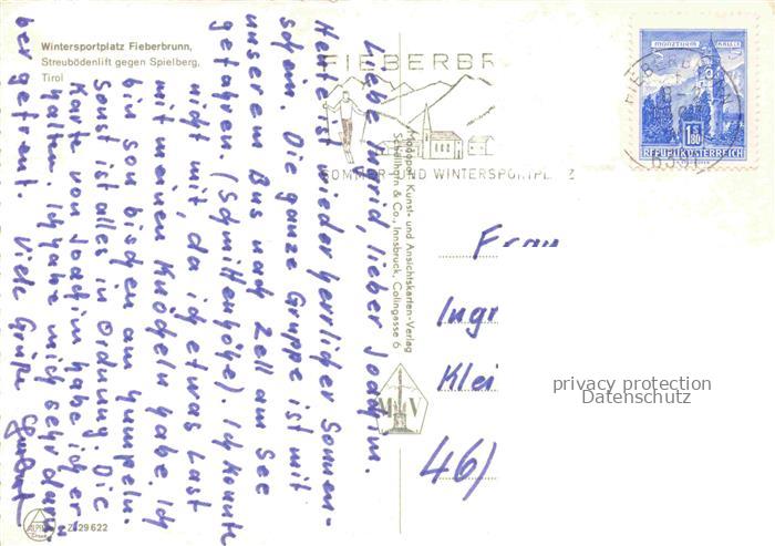 74063366 alte Postkarte Sessellift Chairlift Telesiege Fieberbrunnen Spielberg Tirol postalisch gelaufen Erhaltung siehe scans [IrynaD87] KatCode: 22040000000400