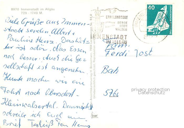 73898957 alte Postkarte Sessellift Chairlift Telesiege Immenstadt am Allgaeu postalisch gelaufen Erhaltung siehe scans [IrynaD87] KatCode: 22040000000400