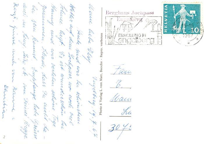 73929777 alte Postkarte Sessellift Chairlift Telesiege Jochpass Truebsee postalisch gelaufen Erhaltung siehe scans [IrynaD87] KatCode: 22040000000400
