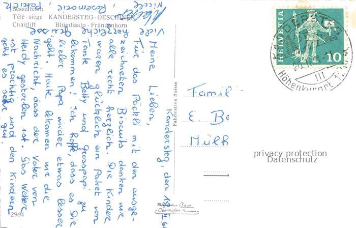 74051238 alte Postkarte Sessellift Chairlift Telesiege Kandersteg Oeschinen postalisch gelaufen Erhaltung siehe scans [SanaeD93] KatCode: 22040000000400