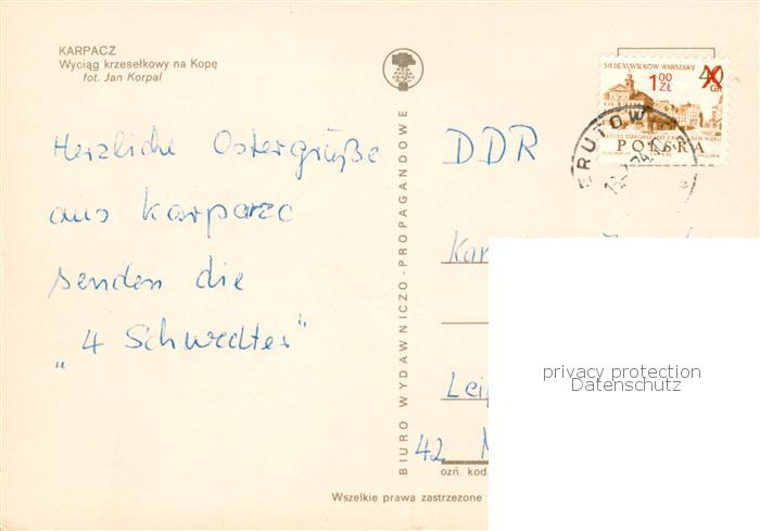 73899058 alte Postkarte Sessellift Chairlift Telesiege Karpacz postalisch gelaufen Erhaltung siehe scans [IrynaD87] KatCode: 22040000000400
