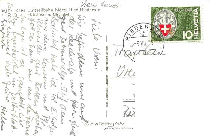 74024758 alte Postkarte Sessellift Chairlift Telesiege Moerel Ried Riederalp postalisch gelaufen Erhaltung siehe scans [IrynaD87] KatCode: 22040000000400