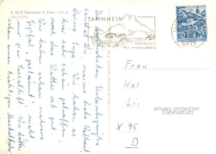 73900485 alte Postkarte Sessellift Chairlift Telesiege Tannheim Tirol postalisch gelaufen Erhaltung siehe scans [IrynaD87] KatCode: 22040000000400
