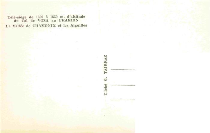 74052266 Sessellift Chairlift Telesiege Tele siege Prarion Vallee Chamonix postalisch nicht gelaufen Erhaltung siehe scans [SanaeD93] KatCode: 22040000000400