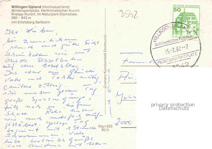 74096518 Sessellift Chairlift Telesiege willingen Upland Hochsauerland postalisch nicht gelaufen Erhaltung siehe scans [SanaeD93] KatCode: 22040000000400