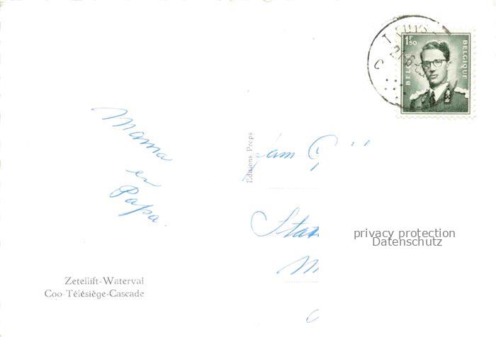 74012016 alte Postkarte Sessellift Chairlift Telesiege Zetelift waterval Coo Telesiege Casecade postalisch gelaufen Erhaltung siehe scans [IrynaD87] KatCode: 22040000000400