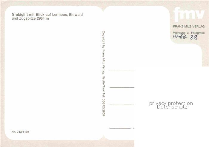 Sessellift Grubig Lermoos Ehrwald Zugspitze postalisch nicht gelaufen Erhaltung siehe scans [PaolaD17]