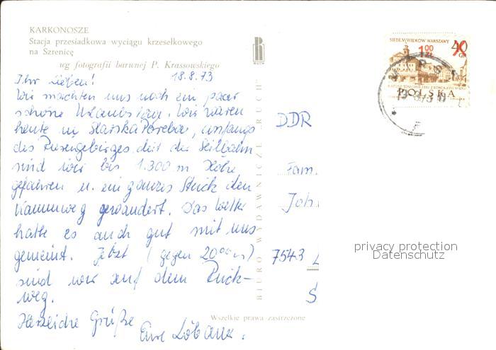 alte Postkarte Sessellift Karkonosze Stacja przesiadkowa postalisch gelaufen Erhaltung siehe scans [PaolaD17]