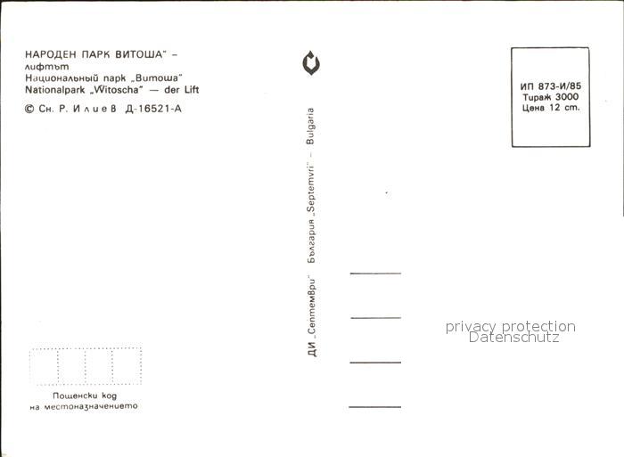 Sessellift Nationalpark Witoscha postalisch nicht gelaufen Erhaltung siehe scans