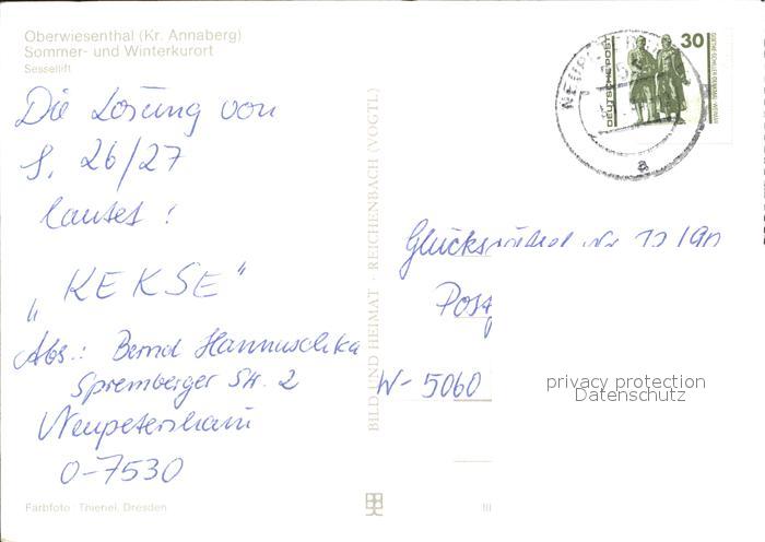 alte Postkarte Sessellift Oberwiesenthal postalisch gelaufen Erhaltung siehe scans