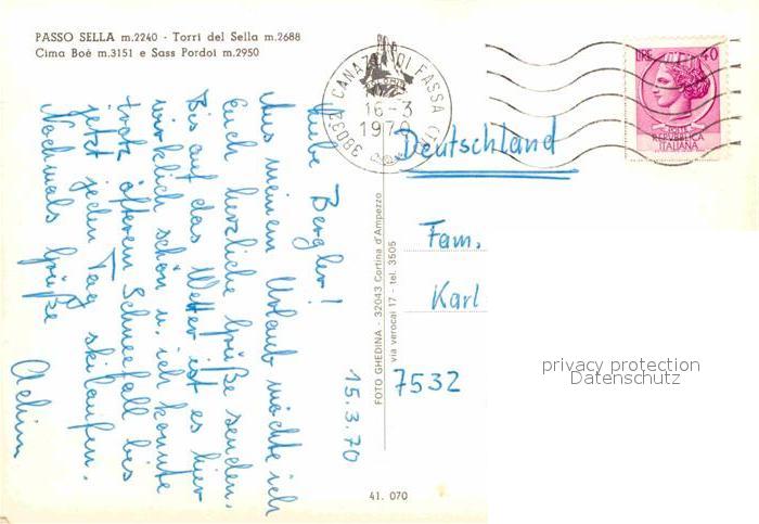 alte Postkarte Sessellift Passo Sella Cima Boe Sass Pordoi postalisch gelaufen Erhaltung siehe scans [PaolaD17]