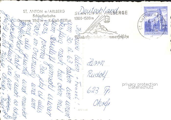 alte Postkarte Sessellift Schindler St. Anton am Arlberg Gampen Kapall postalisch gelaufen Erhaltung siehe scans