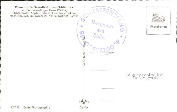 Sessellift Schoenblick Oberstdorf Walmendinger Horn Gruenhorn postalisch nicht gelaufen